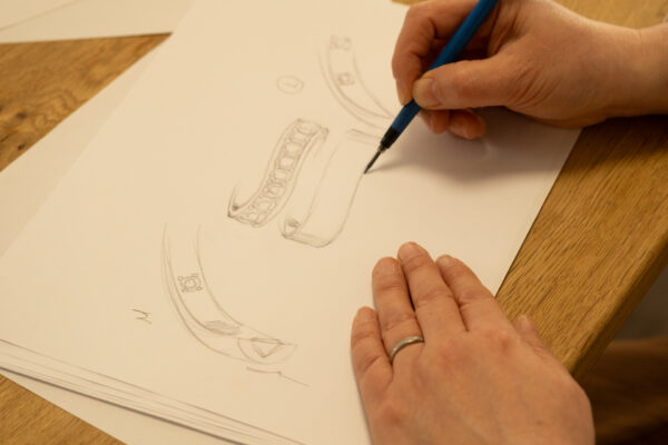 1. 目の前で形になる「ライブスケッチ」 単なるヒアリングではありません。デザイナーがおふたりの対話からインスピレーションを受け、その場でデザイン画を書き上げていきます。言葉にできない細かなニュアンスまで、リアルタイムで形になっていく感動をお届けします。