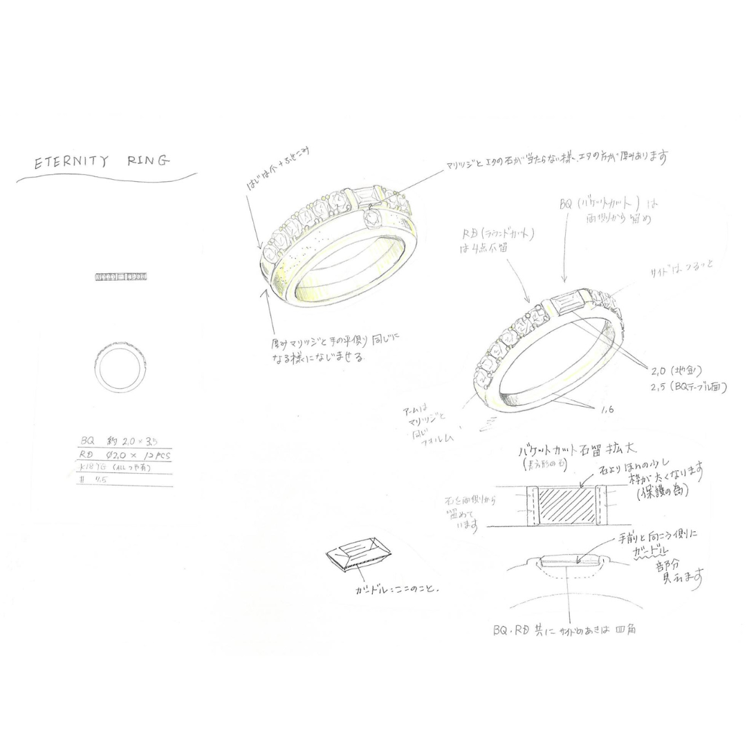 1. 目の前で形になる「ライブスケッチ」 単なるヒアリングではありません。デザイナーがおふたりの対話からインスピレーションを受け、その場でデザイン画を書き上げていきます。言葉にできない細かなニュアンスまで、リアルタイムで形になっていく感動をお届けします。
