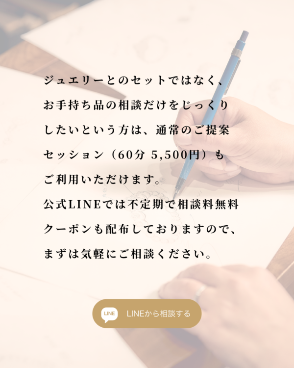 目の前で「ジュエリーデザイン画」にしてご提案します。